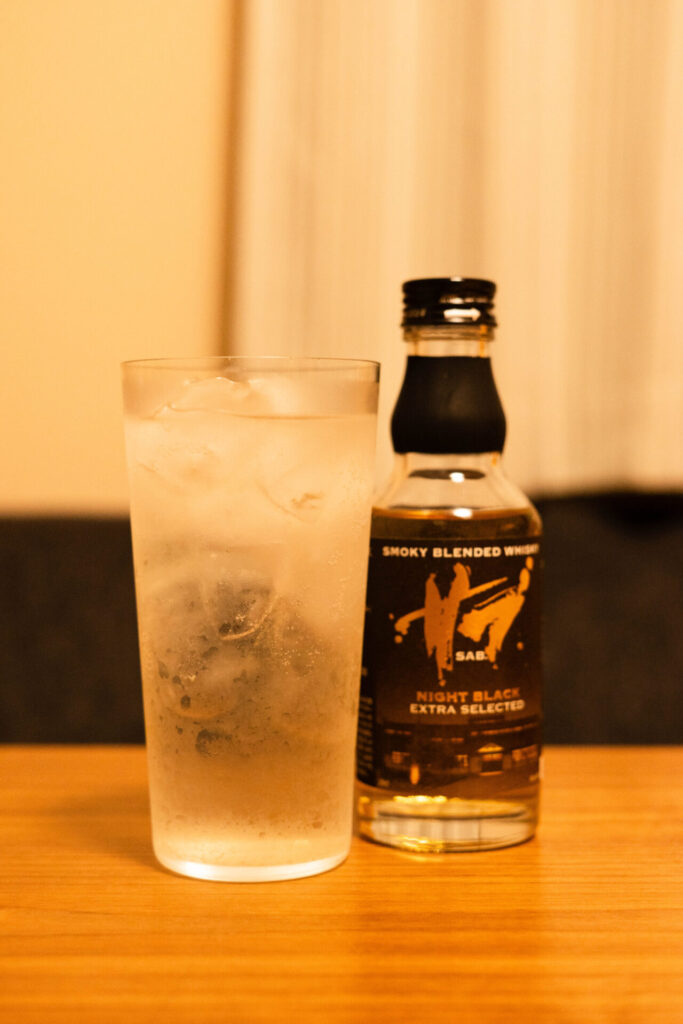 SAB. NIGHT BLACK(サブ ナイトブラック)は、富山県の三郎丸蒸留所が手がけるブレンデッドウイスキーです。黒を基調としたラベルには、山の稜線の向こうに沈む光がわずかに残るような静けさがあって、手に取った瞬間に「夜の時間に似合う一本だな」と感じました。
